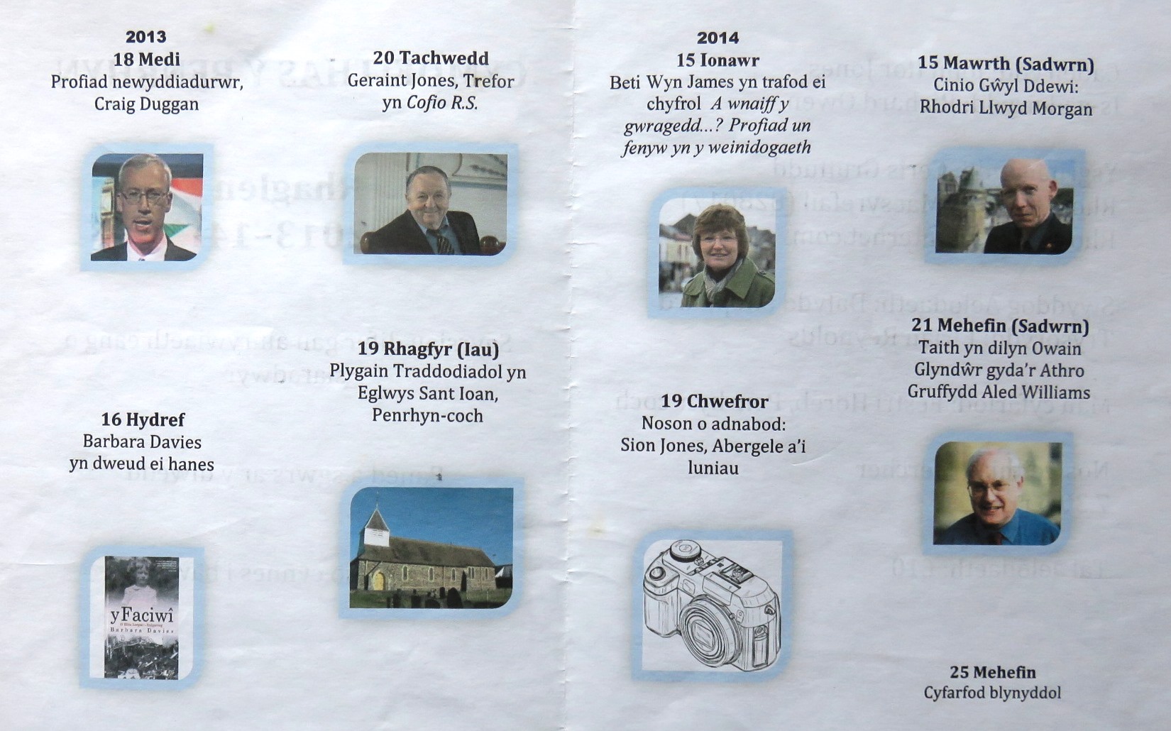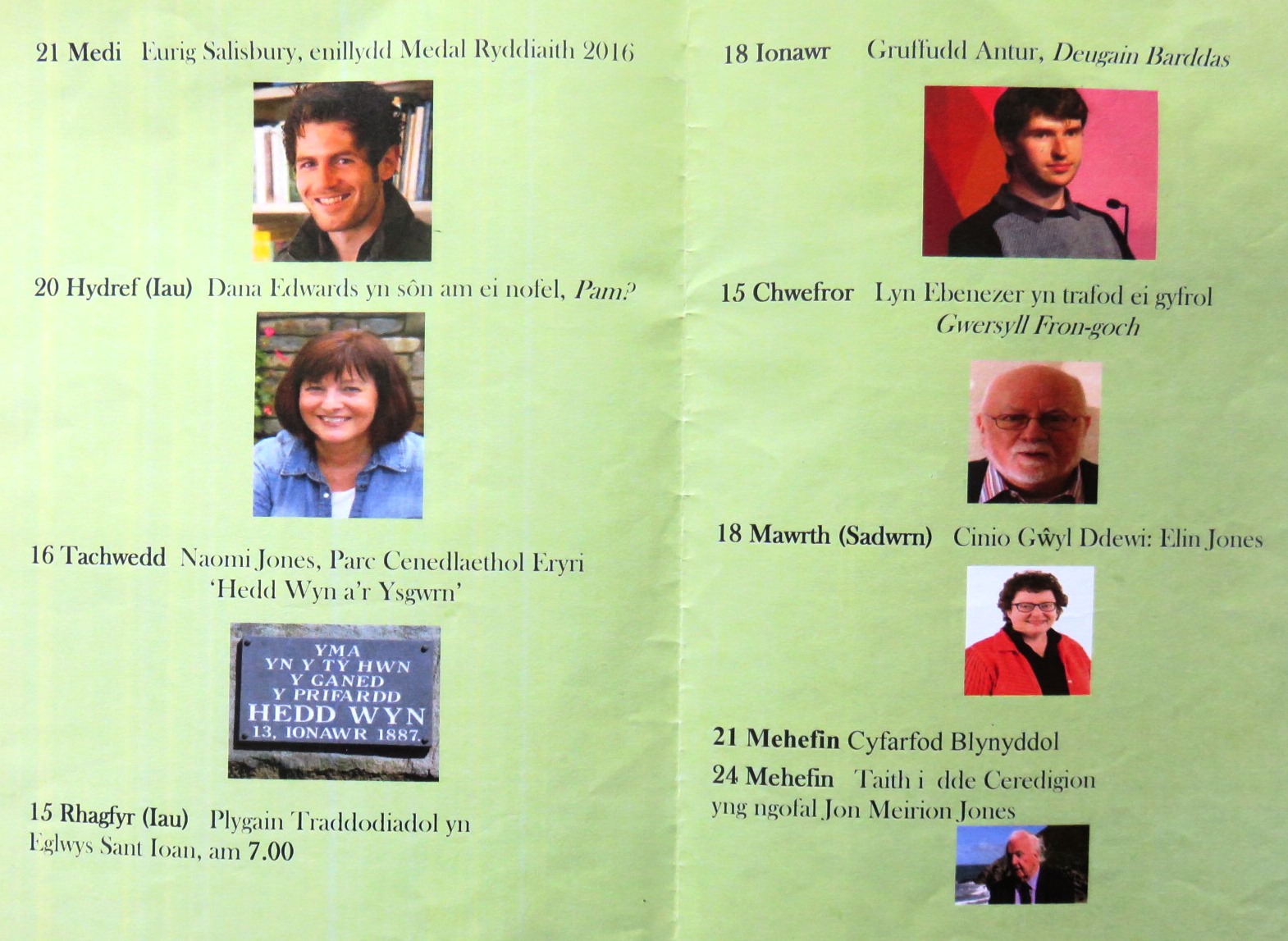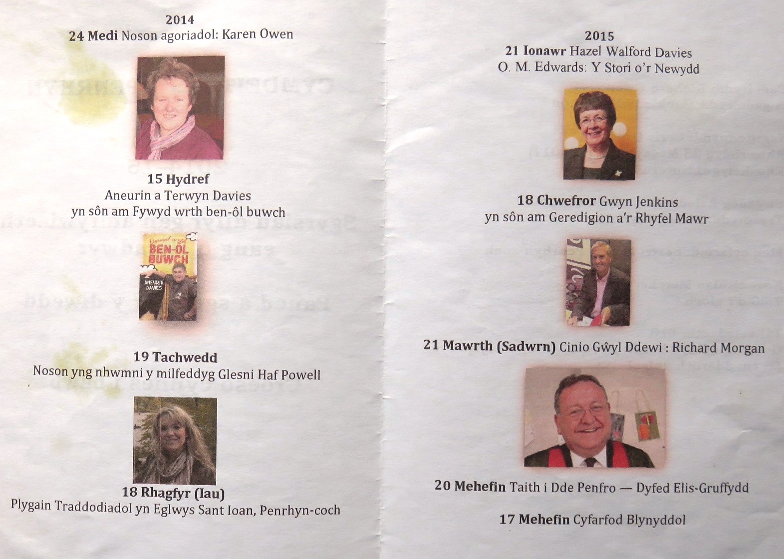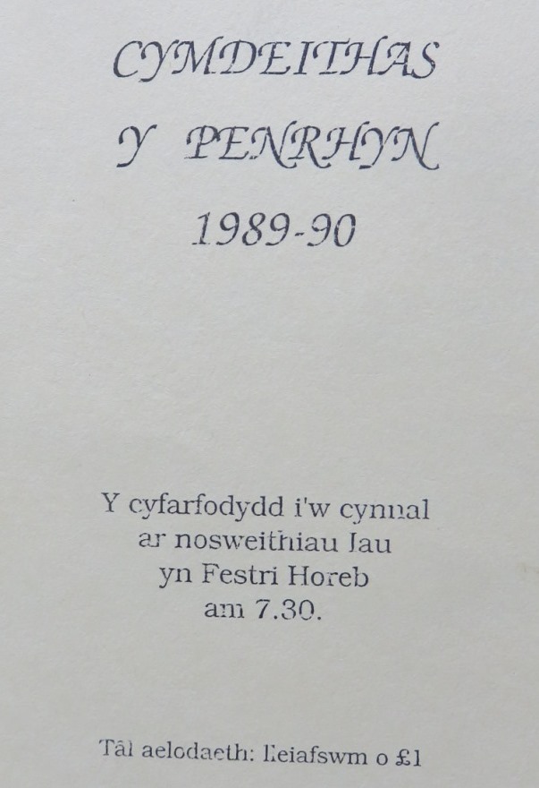Nos Lun, 9 Tachwedd bydd Eigra Lewis Roberts yn sôn am ‘Fyd Minafon’, ac ar nos Lun 7 Rhagfyr daw Dic Jones i ‘Drafod cerddi’. Festri Horeb fydd y man cyfarfod a dechreuir am 7.30.