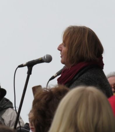 Linda yn canu “Marwnad yr Ehedydd” adeg Parêd Dydd Gŵyl Ddewi yn Aberystwyth 28.2.2015